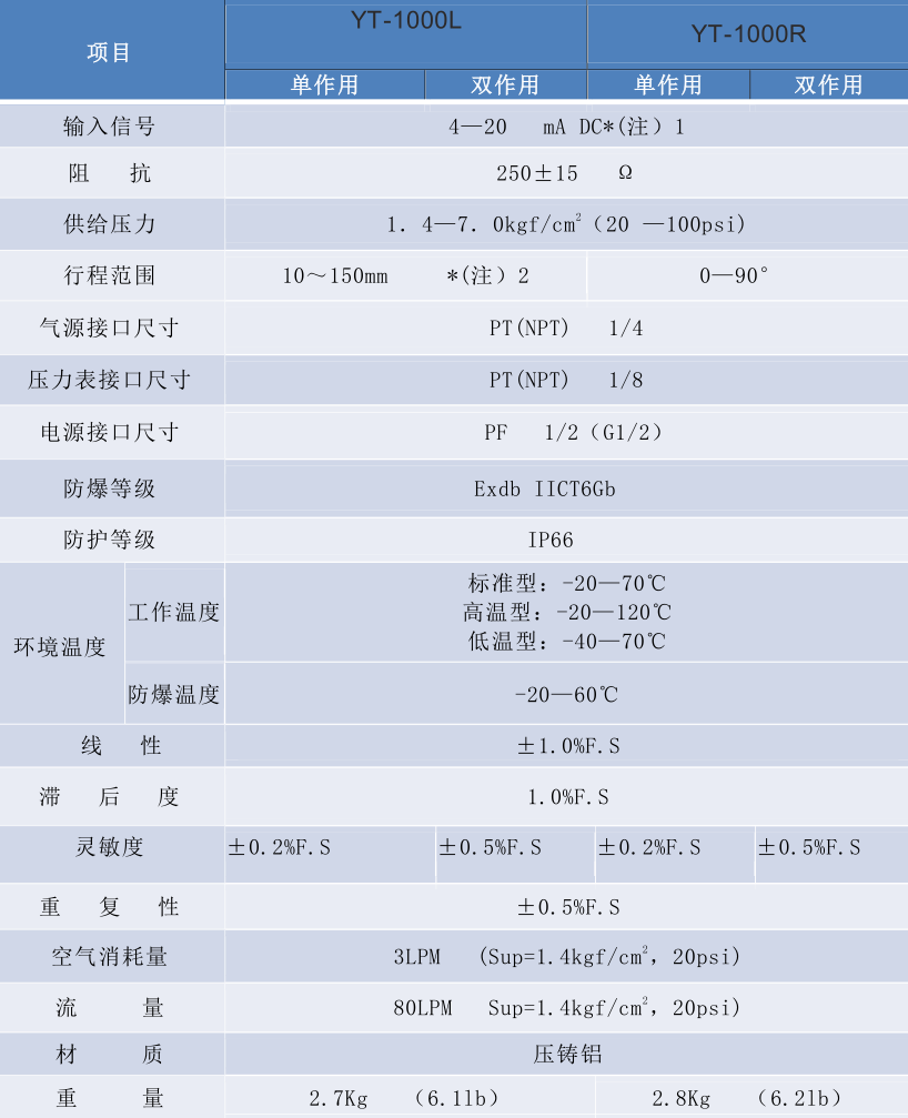 YT-1000系列定位器产品特点: